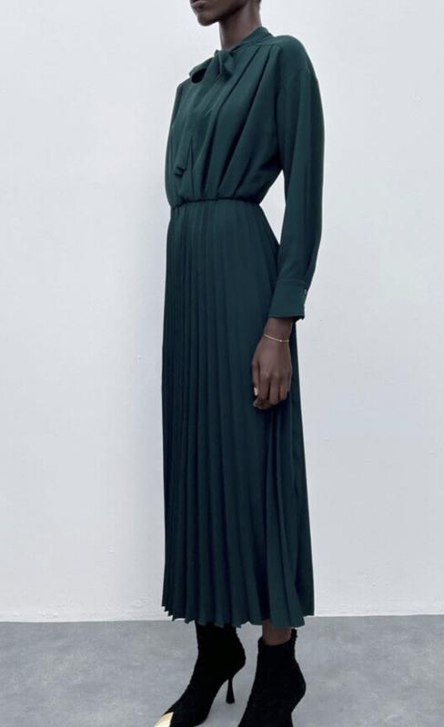 🌿изумрудное платье плиссе от Zara с резинкой на талии, есть подклад Размер:М Замеры:ПОГ 50 см, ПОТ 30 см, длина 126 см, рукав от горловины 71 см