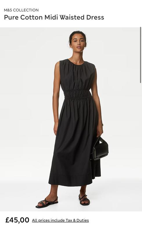 Сукня в ідеальному стані, як нова. Дуже гарний фасон, стильно і на кожен день і на свято, натуральний склад 100% бавовна, важка, дуже якісна. Сукня з кишенями, верх з не великою драпіровкою, на талії резинка, на спинці, ближче до шиї завʼязки. Розмір по бірці 16. Заміри: Довжина від плеча: 128 см Пів обхват груди: 56 см Пів обхват талії: 43 см, тягнеться до 63 см Пів обхват стегон: 81 см
