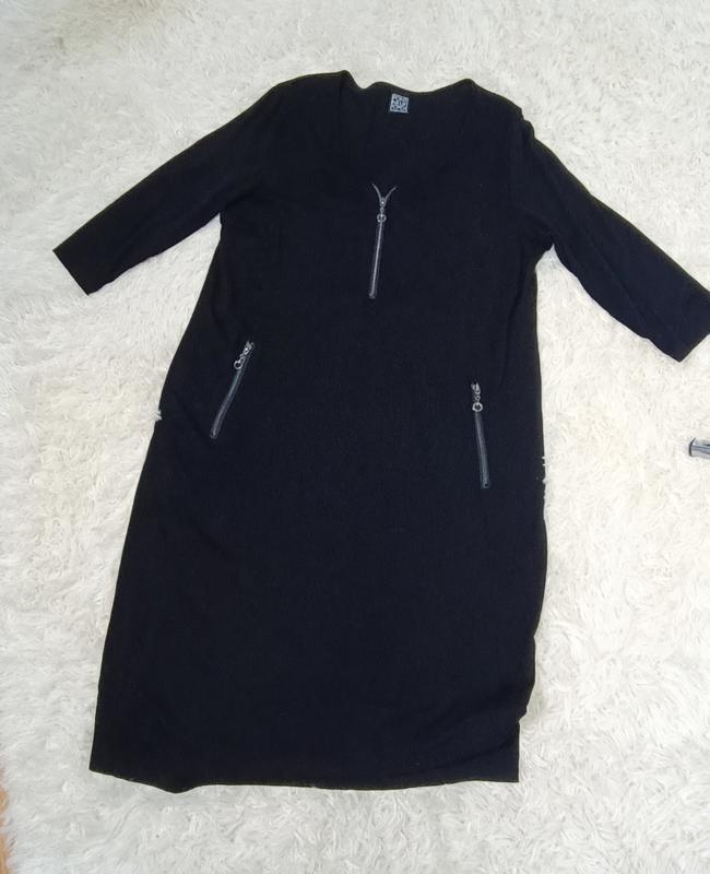 Красивое вискозное платье,карманы и бюст на молнии,рукав 3/4 пог 56 пот 54 поб 58 длина по спинке 108 плечи 44 рукав 47