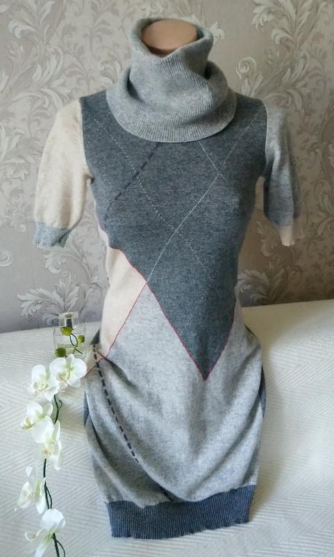 Платье в идеальном состоянии. Без дефектов. Длина - 90см, рукав-28см, ПОБ - 41см, низ-33см, остальные замеры на фото. Бирки с составом ткани нет. Тактильно и визуально шерсть, возможно с небольшим % кашемира.