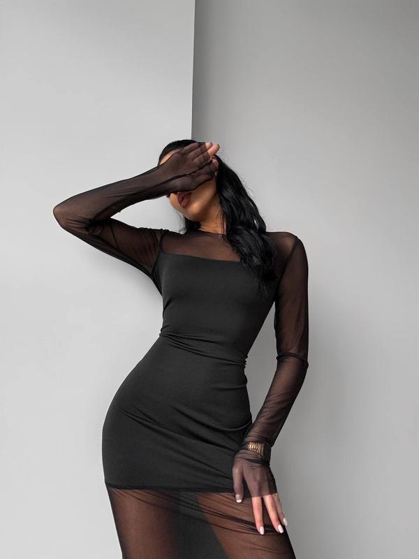 ⬆️ФОТО⬆️ Сукня Мод 320 ам Розмір: 42-44, 46-48 Тканина: мікродайвінг+сітка Колір: чорний Фото реал