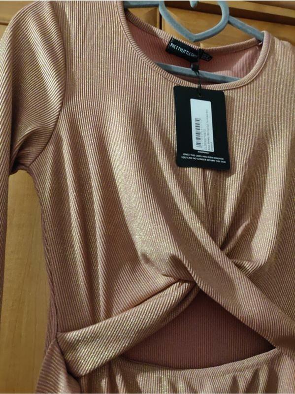 Новое платье Pretty little thing пудрово карамельное с золотистой нитью металлик с этикеткой трикотаж, хорошо тянется 38 плечи 40 под руками 42 по бедрам 86 длина