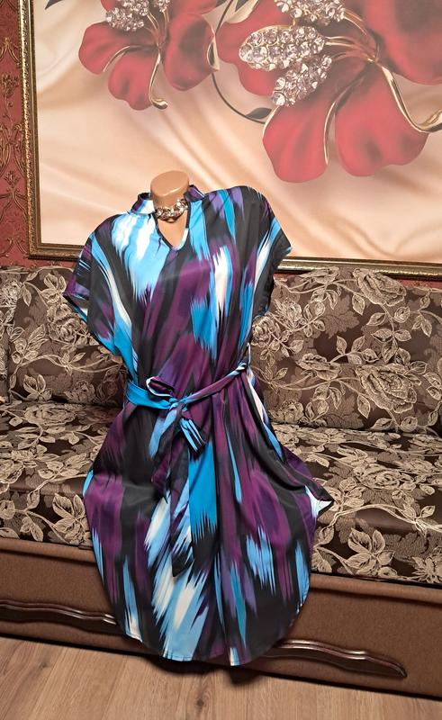 Платье сарафан под пояс.длина 111.низ полукругом.по бокам короче.можно надеть под лосики как тунику.грудь до 58