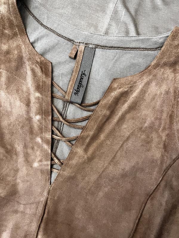 Класна, унікальна річ. Замша-це те, що завжди викликає захоплення, чуттєвість і рок-н-рол. Перед-замша відтінку капучино, спинка-сіро-коричнева віскоза, вона непогано тягнеться. Стан відмінний. Рідний розмір М. Довжина-90,00 см Ширина плечей-31,00 см НОГ-44,00 см НОТ-45,00 см НОБ-50,00 см Склад: 100% нат. шкіра, 100% віскоза. ! оплата на карту, поверненню не підлягає.