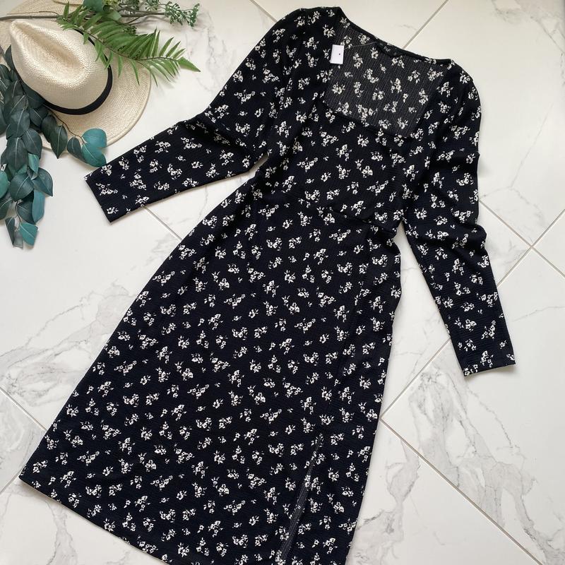 Сукня чорна у білі квіти стан ідеальний, фактурний поліестер, добре тягнеться, паперова бірка р хл -довжина 118, рук 64 -нОг 52-60 -нОт 44-51 -нОб 64 вільно ФОТО НА ТІЛІ НЕМАЄ