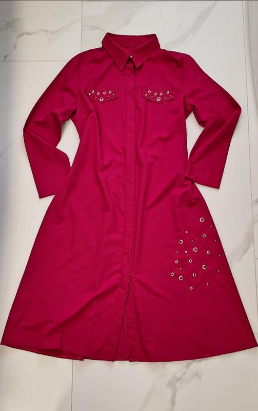 Новое платье без нюансов в свободном стиле в холодном малиновом цвете. Карманы отсутствуют, пуговицы от верха до низа потайные (на фото), можно делать воротник-стойку. Плечи 40см Длина рукава 60см Длина 110см Полуобхват груди 50см Полуобхват талии 48см Полуобхват бедер 56см и идет вниз расклешенное. Возникнут вопросы - пишите