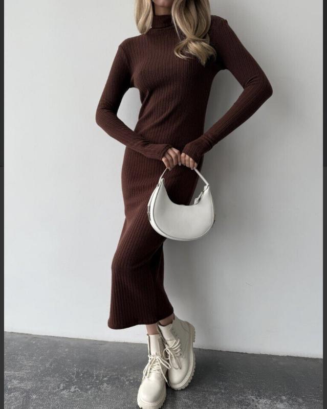 Знову в наявності ❤️ Плаття лонгслів в'язка модель – 735 Матеріал: турецька вʼязка (склад 60% віскоза, 35% поліамід, 5% еластан) Дуже м'яка і приємна на дотик та еластична тканина. Розміри: 42-44, 46-48, 50-52 Кольори: чорний, молочний, шоколадний(г803)елф Тканина ЛЮКС якості. Нов
