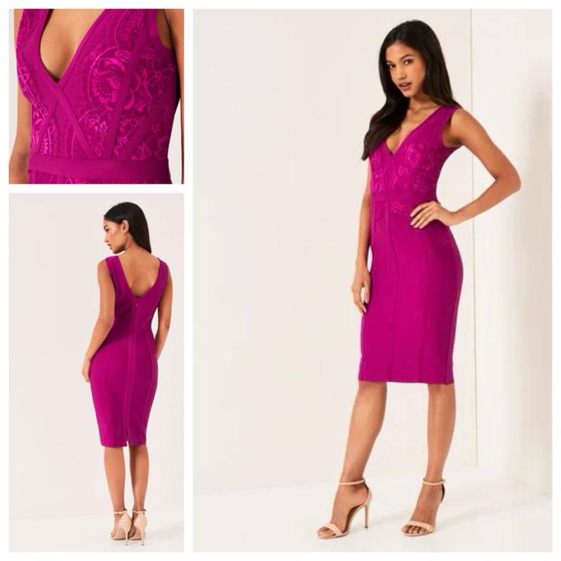 Неймовірно яскрава бандажна сукня міді з оздоблення мереживом На спині застібка змійка Розмір М