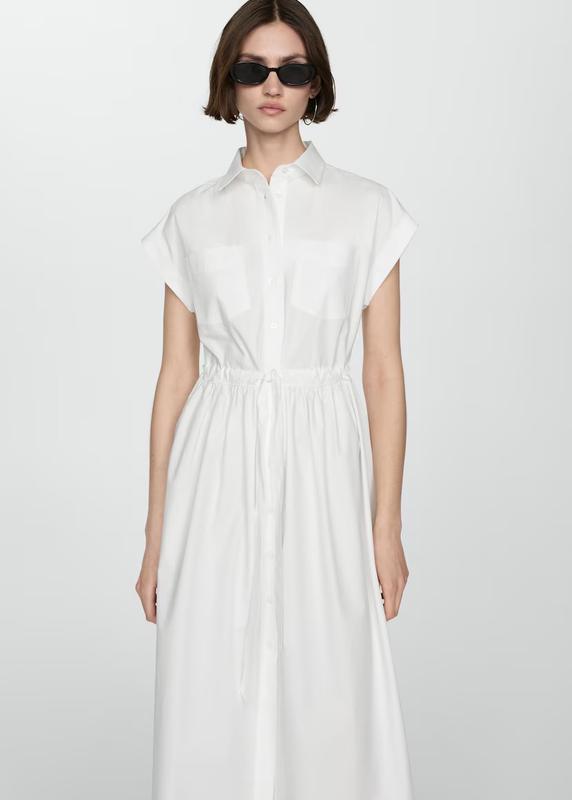 Mango Нове, з офіційного сайту Міді-дизайн. Крій розкльошений. Сорочений комір. Короткі рукави, затягується на талії. Декоративний бант. Застібка на ґудзики спереду. 100% бавовняна тканина. S розмір в наявності