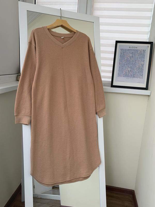 Вафельна сукня uni qlo Розмір S, можна на М Довжина 102/104 см Півобхват грудей 50 см Півобхват талії 50,5 см Півобхват бедер 53 см Рукав 50,5 см Рукав від горла 66 см Матеріал: 60% бавовна і 40% поліестер Стан: ідеальний