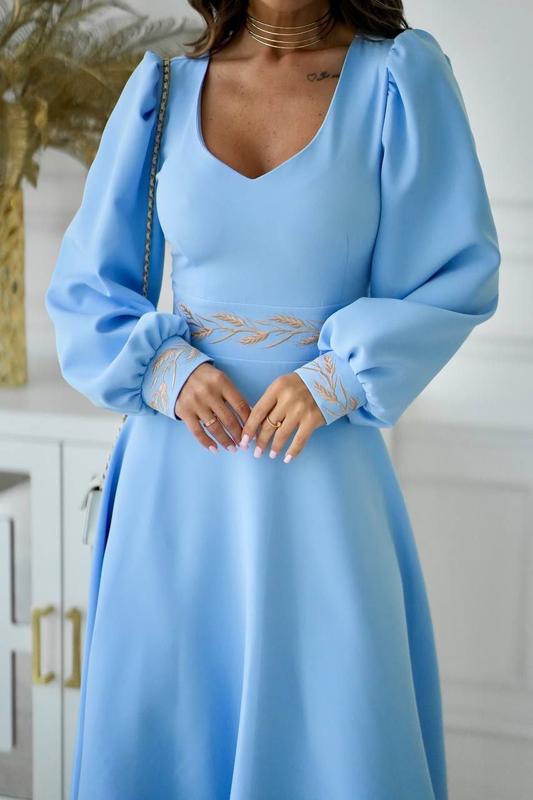 Сукня з вишивкою на талії та манжетах арт. emax. 7559 Розмір: S(42), М(44), L(46), XL(48) Тканина: костюмка + вишивка Довжина сукні: 115 см. Рукава: 65 см. Кольори: чорний, молочний, блакитний