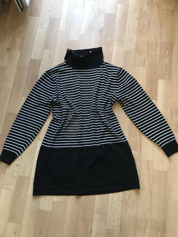 Довгий светр або Плаття міді вище коліна з написом та силуетом зайчика, дуже хорошої якості Силует Пряме Бірочка зі складом ткани відсутня, схоже на бавовна+віскоза+еластан, можливо є % вовни М‘яке і дуже приємне на дотик Чисте Добре тягнеться, зберігає форму Довжина 80 см НОГ 56 при потребі потягнеться ще на см +10 Низ 58 см Рукав 60 см Плечі спущені 45 см Спереді напис+напис маленькими стразами, тримаються добре при пранні навиворіт Якість супер