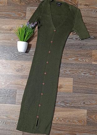 В'язана сукня міді по фігурі від бренду Reserved.Колір хакі. Розмір вказано L, буде і на М. Стан гарний без нюансів.