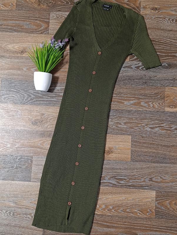 Вязаное платье миди по фигуре от бренда Reserved.Цвет хаки. Размер указан L, будет и на М. Состояние хорошее без нюансов.