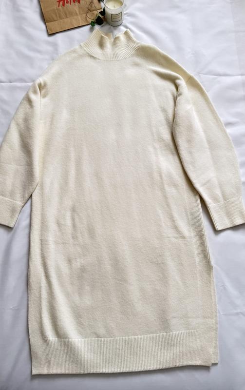 Тепла сукня від H&M, довжина міді, збоку є розрізи, красивий молочний колір. Без нюансів, одягнута два рази. Розмір по бірці S, але фасон вільний, краще на М, пог-56-57, довжина-102, рукав від шиї-73 см
