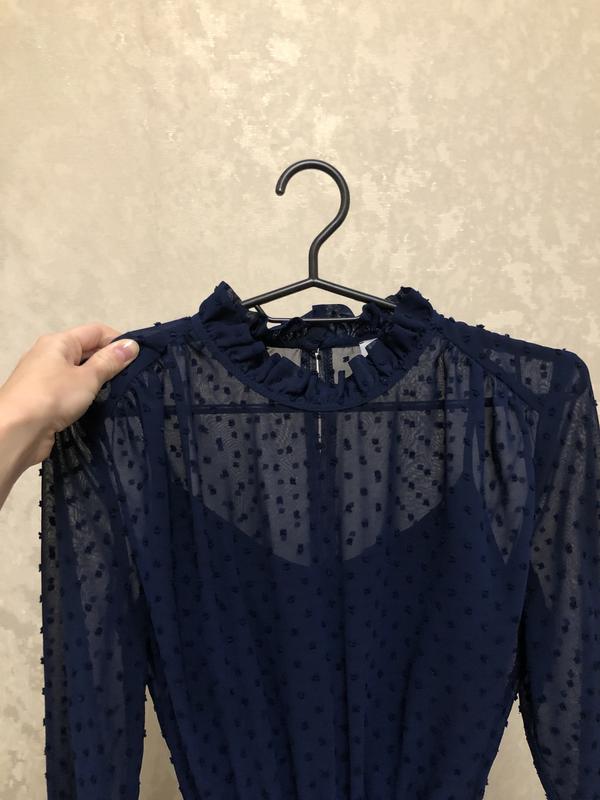 Темно-синя сукня міді бренду Vovk. Складається із комбінації і сітки, що вдягається поверх. Дуже вдала модель, гарно сідає і виглядає нарядно. Довжина від плеча - 97 см ПОВ грудей - 41 см