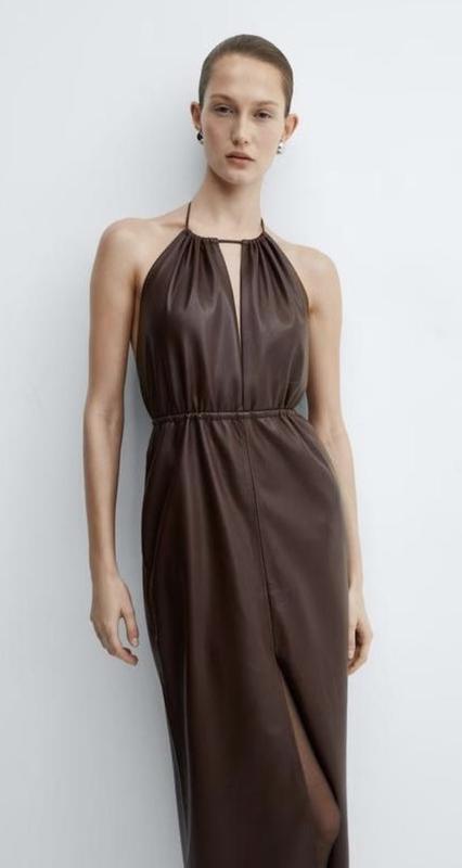 НОВЕ. Шкіряне коричневе плаття-сарафан від Mango. Рекомендую до придбання. Ефектна сукня міді з штучної шкіри Mango. Розмір S. Довжина виробу від талії до низу 93 см . ПОТ на резинці , стягується з 42 см до 32 , тобто можна регулювати. ПОБ 47 см . Всередині мʼяка замша .