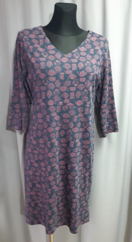 Платье Wrird Fish. Цвет бордовый, рисунки чайников. Размер 12 (S). ПОГ-50, ПОТ-45, ПОБ-50, Плечи-41, Рукав-42, Длина-95.