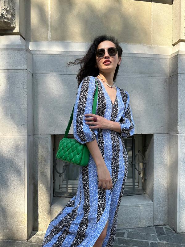 *з паском і ґудзиками в тон Довжина - 140 см Пог- 48 СМ Поб-55 СМ Розмір - 36(С-М) Стан - ідеальний Одягала 2-3 рази (купувала за 1500) Матеріал - бірка зрізана, схожий на віскозу