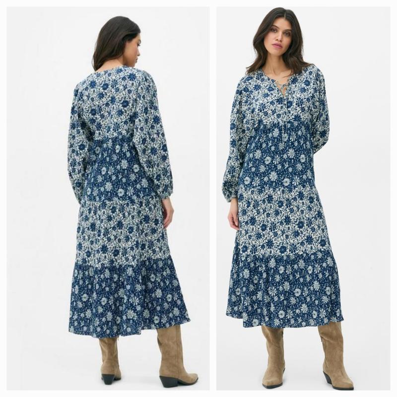 Это платье миди имеет очаровательный многоуровневый дизайн с нежным цветочным узором в насыщенных синих и кремовых тонах. Круглый вырез горловины подчеркнуто изысканной завязкой, а рукава по всей длине добавляют изящества. Изящной длины миди идеально подходит для повседневных прогулок или непринужденных выходных. Сочетайте его с кроссовками, чтобы создать непринужденный дневной образ, или дополните его ботильонами и джинсовой курткой, чтобы создать андлина-121 см, длина рукава от горловины-71 см, полуобхват груди-56 см, талия-53 см, стегно-63 см, ткань не тянется, карманов нет, нижней юбки нетамбль в стиле бохо. Универсальный и стильный, этот предмет гардероба на все сезоны. Вырез горловины: Круглый Крой: обычная Длина рукава: Полная длина Длина штанины: Меди Размер модели: S Рост модели: 174 см. Состав материала: 99% хлопок, 1% эластан Страна-производитель: Индия