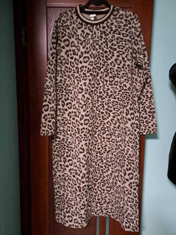 Вязаное платье-джемпер с люрексом и леопардовым принтом большого 20-22 размера
