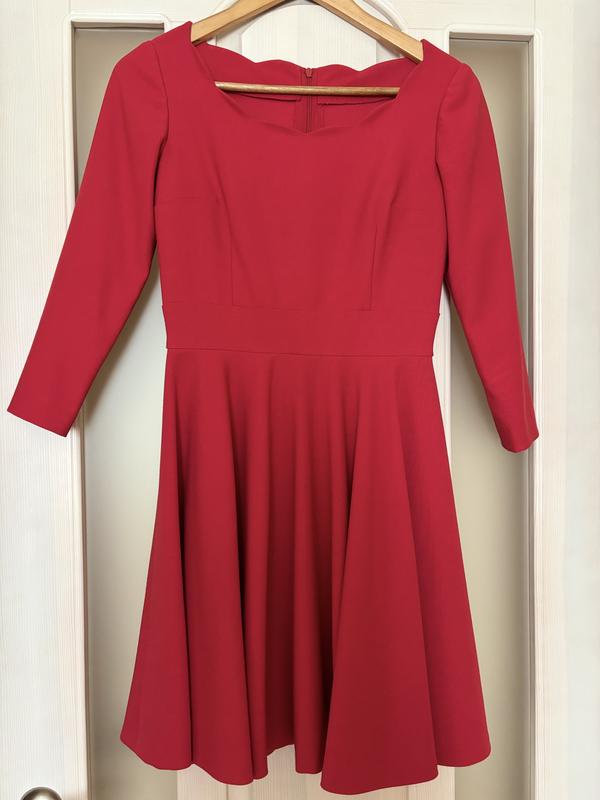 Изысканное красное платье, фасон клеш. Шила по заказу. Очень качественная натуральная ткань, подойдет на любое время года. Скрытый замок. Размер s, длина 88см.