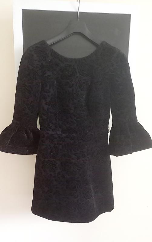 очень красивое маленькое платье фактурный бархатный вызасунок с подкладом красиво держит форму можно на подростка состояние идеальное ( ребенок 16 лет 1 раз одевала на праздник) высылкиваю после 100% оплаты на карту или наложенным с подпиской