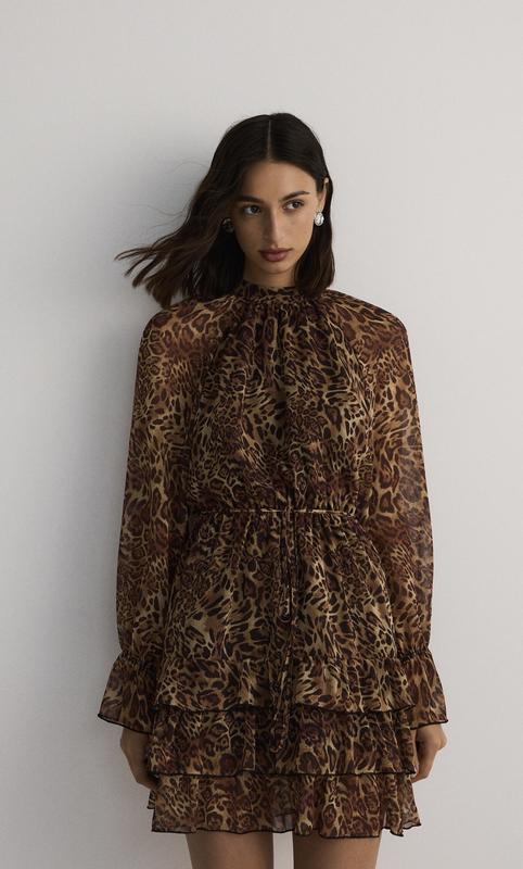 Стильна шифонова сукня в лео принт Reserved, нова, з етикеткою, колір, як на фото вживу, класно дивиться з любим взуттям: туфлями, чоботами, особливо з «козаками»👌 Розмір S, пог-45-46, по талії до 35, довжина-85 см