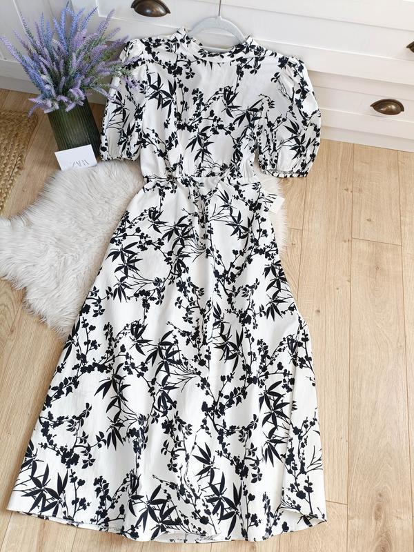 Меди-платье из штапельного 100%-го хлопка. Круглый ворот и короткие рукава-баллоны с эластичной окантовкой. Складки на поясе. Расклешенный низ. Застежка на пуговицы на шее. Размер L: ✅ Плечи - 35 см ✅ Рукав -31 см ✅ НОГ -50 см ✅ НОТ - 40 см ✅ НОС - 54 см ✅ Длина - 122 см ✅Состав: 100% хлопок