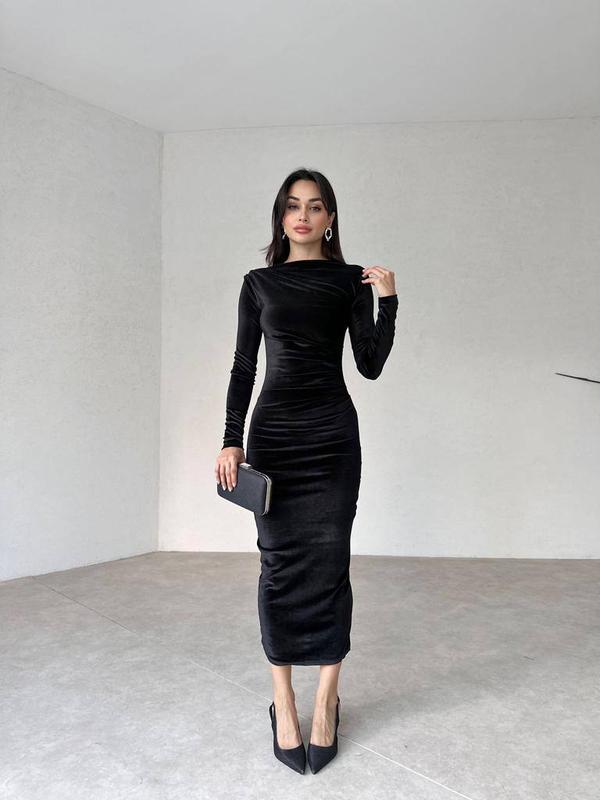 Модель 5467 Женское платье из бархата Размерный ряд S,M,L,XL Тканина бархат Цвета черный, бургунди и шоколад Супер качество Застегивается на молнию