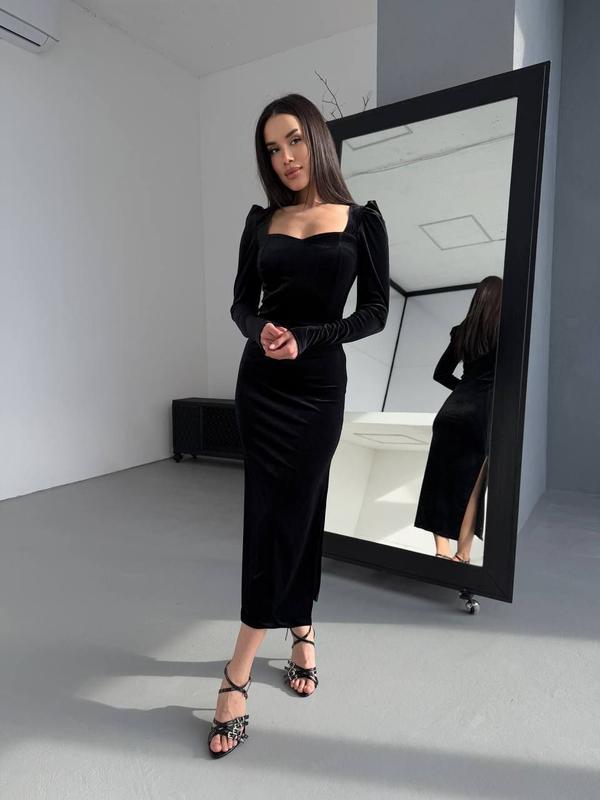 МА 18.10 Фото реал Новинка 💎10 Сукня Мод 4/ мр028<91<102 Розмір 42-44,44-46 Тканина щільний оксамит 💎 Кольори : чорний Довжина 130 см Якість ❤️🔥