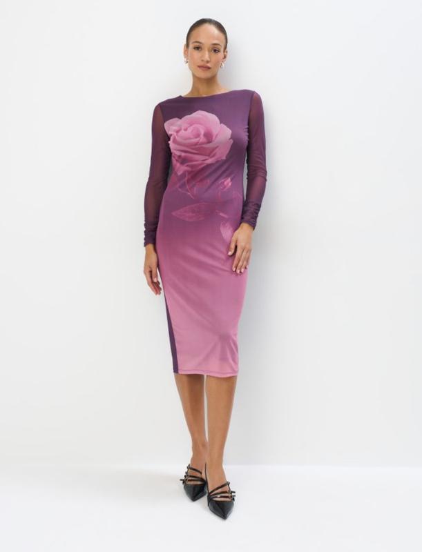Напів обʼєм грудей 48, тягнеться до 59 Напів обʼєм талії 43, тягнеться до 50 Напів обʼєм стегон 51, тягнеться до 60 Довжина 126 см Рукав прозорий зі зборкою