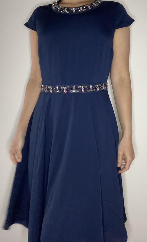 Сукня синя декорована камінням. Для події. Напівобʼєм грудей - 44 см. Дефектів немає.