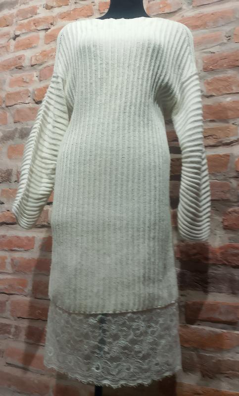 красивое,тепла, ломаное платье. средней/крупной вязки. с широким кружевом по низу. в составе шерсть, кашемир. размер до Л. одето на С