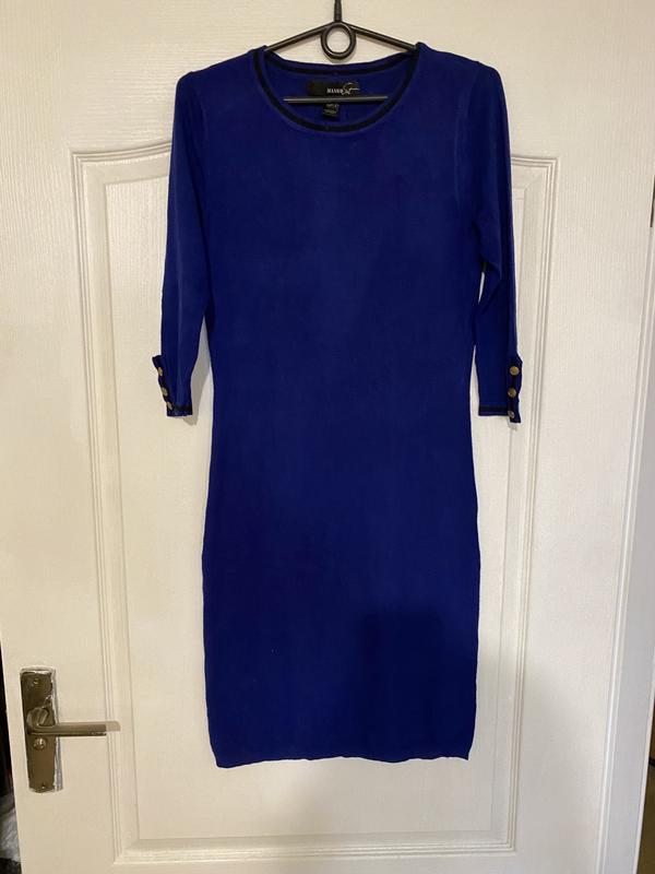 Жіноча сукня в довжину міді. Прямого крою. Прикрашена красивими ґудзиками на рукавах і позаду. Стан нової. Розмір 38/L/46 40/L/48