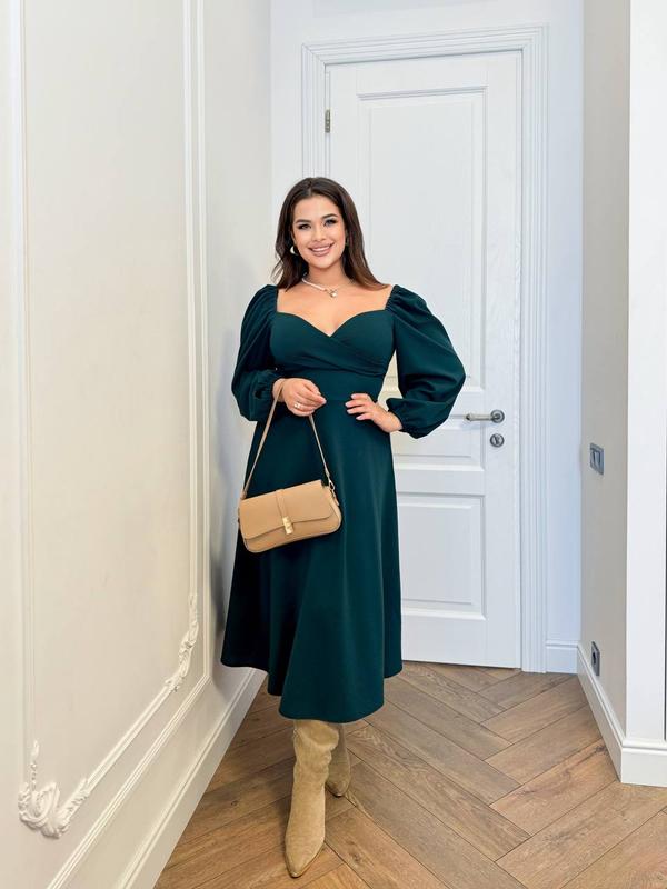 Сукня з романтичними рукавами-ліхтариками Ця стильна сукня стане справжньою родзинкою вашого гардеробу. Завдяки елегантному дизайну і універсальній довжині міді, вона ідеально підходить для будь-яких заходів — від повсякденних прогулянок до вечірніх виходів. - Матеріал: високоякісна тканина, яка забезпечує комфорт і тривалість носіння. - Декольте: виріз серця додає ніжності та витонченості образу. - Рукави: об'ємні рукави-ліхтарики створюють романтичний і модний акцент. - Довжина: сукня середньої довжини підкреслює фігуру і створює елегантний силует. - Кольори: доступна у класичному чорному, білому, насиченому червоному та смарагдовому кольорах. ▪️тканина: Креп дайвин ▪️кольори: Чорний ,Білий , Червоний , Смарагдовий ▪️розміри: 50-52,54-56,58-60,62-64 Ця сукня стане ідеальним вибором для тих, хто цінує комфорт, стиль і універсальність. Заміри модель : 269 Розтяжність тканини 15-20 см ▪️50-52 Ог - 100 Об - 140 От -100 Довжина рукава 60 Довжина по спинці 109 ▪️54-56 Ог -110 Об -150 От - 110 Довжина рукава 60 Довжина по спинці 109 ▪️58-60 Ог - 120 Об - 170 От - 120 Довжина рукава 60 Довжина по спинці 110 ▪️62-62 Ог -130 Об -180 От - 130 Довжина рукава 64 Довжина по спинці 110 SB