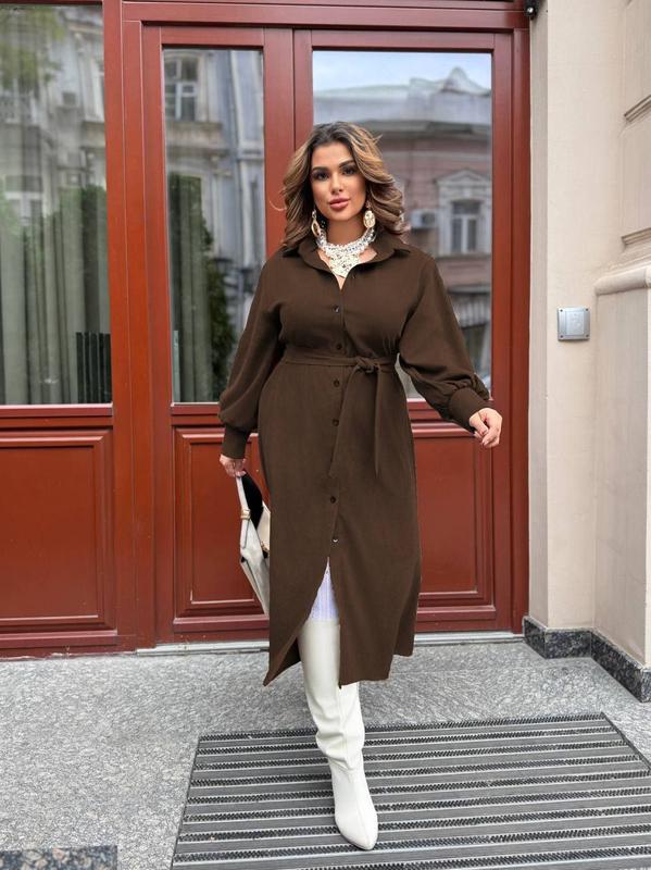 Платье из вельвета арт. sat. 5673 Размеры: S (42-44), L(46-48), 2XL (50-52), 3XL(52-54) Ткань: вельвет хорошего качества Цвета: беж, молоко, черный, шоколад и кэмел Сукня на ґудзиках, у комплекті пасочок. Станет любимой вещью Вашего гардероба. Супер качество! Цена 1050 грн