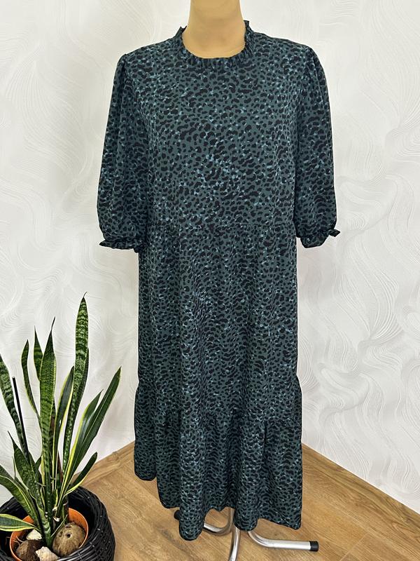 Зелений фасон міді має ліф на ґудзиках по спинці та багатоярусну спідницю для вільних рухів. Крій:струмливий Довжина: міді Дизайн: тваринний принт, багатоярусна спідниця Вказаний розмір uk 18,eur 46,us 14,підійде орієнтовно на 52р,порівнюйте з вимірами👇👇👇 Плечі 39 см Пог 56 см Пот 52 см Пос вільно,близько 73 см Довжина 120 см,до пояса 41 см Рукав 42 см,ширина 24,5 см Арт 6673