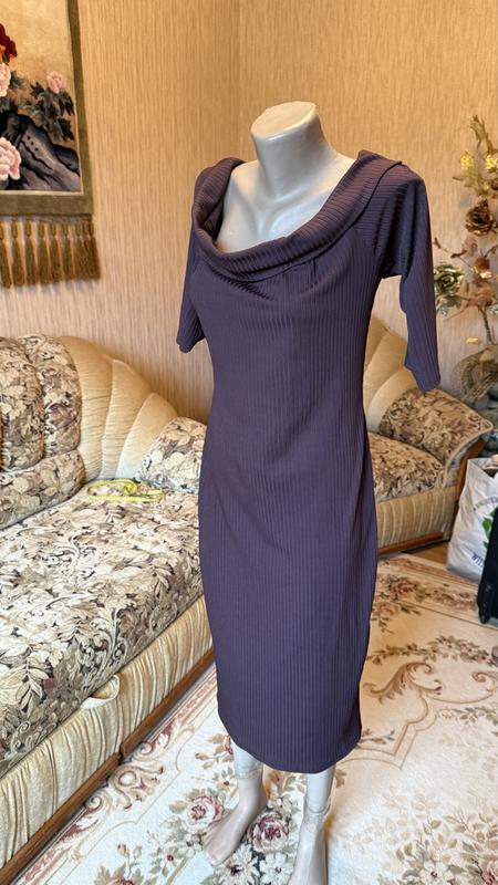 Напівобʼєм грудей-50 тягнеться Напівобʼєм талії-46-тягнеться Напівобʼєм стегон-61-тягнеться Довжина виробу-100 довжина рукава-реглан - 37 Сезон, матеріал, утеплювач, принт-в рубчик, на спущені плечі . Особливості товару-ідеальний стан, Наявність дефектів- немає сукня дуже ефектна . фото на тілі не робимо, похибки в замірах +- 1-2 см.