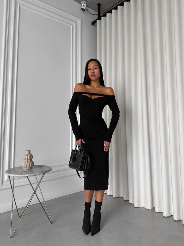Сукня вечірня міді відкриті плечі