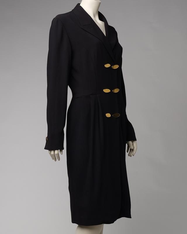 Черное шерстяное платье-жакет Jil Sander Аутентичное. Золотые пуговицы. В отличном состоянии. Без этикетки с размером. Примерно: IT 42 / M Длина 106 см Рукав 61 см Плечи 41 см