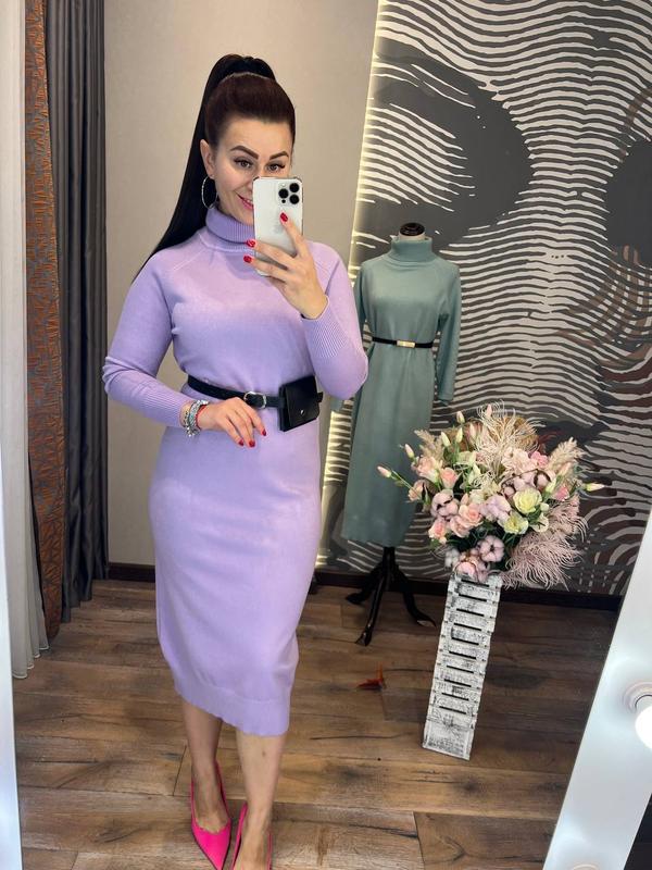 стильное и комфортное платье свободного кроя с высоким горлом, на резинке внизу и рукавах в комплекте с удобным поясом и кошельком, выполненное из приятного к телу трикотажа гладкой машинной вязки высокого качества, платье отлично подчеркнет достоинства вашего фигуры согреет в холодное время года и займет достойное место в вашем гардеробе размер единственный 42-46 длина 112-114 см, длина рукава от шеи 64-66 см, пг 46-48 хорошо тянется код 0490