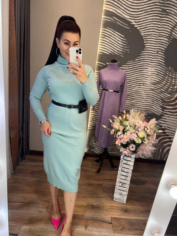 стильное и комфортное платье свободного кроя с высоким горлом, на резинке внизу и рукавах в комплекте с удобным поясом и кошельком, выполненное из приятного к телу трикотажа гладкой машинной вязки высокого качества, платье отлично подчеркнет достоинства вашего фигуры согреет в холодное время года и займет достойное место в вашем гардеробе размер единственный 42-46 длина 112-114 см, длина рукава от шеи 64-66 см, пг 46-48 хорошо тянется код 0490