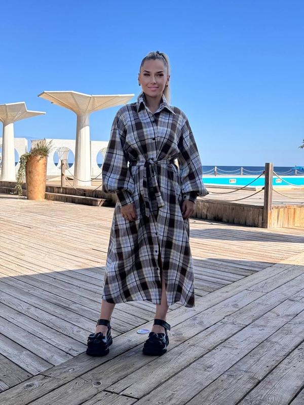 Новинка ❤️ Мод 397 Розмір :42-44,46-48 50-52,54-56 Тканина :фланель ✨ Стильна сукня-сорочка в клітинку ✨ Модна та практична модель, яка поєднує комфорт і трендовий дизайн. 🔸 Класичний крій-сорочка з відкладним коміром 🔸 Кнопка по всій довжині 🔸 Пояс із тієї ж тканини для акценту на талії 🔸 Об’ємні рукави з манжетами для ефектного вигляду 🔸 Довжина міді — універсальний варіант для будь-якого випадку Сукня виготовлена зі щільної тканини у стильну клітинку. Вона дарує відчуття комфорту та створює витончений силует. 📌 Ідеально поєднується з масивним взуттям чи чоботами для кежуал-луків, а також із туфлями та аксесуарами — для елегантних образів. 💎 Ця сукня стане must-have у гардеробі кожної стильної дівчини! Ціна:850 грн