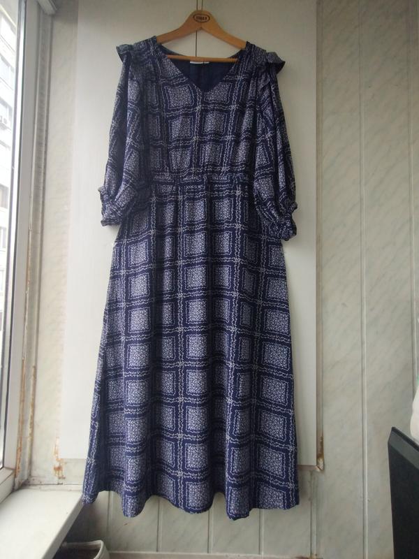 Красивое платье-миди в винтажном стиле Размер заявлен L, будет на наш 38/50 ПОГ 54 ПОТ 45+ ПОБ 67 Плечи 39 Бицепс 27 Длина рукава 48 Длина изделия 134 Как новое