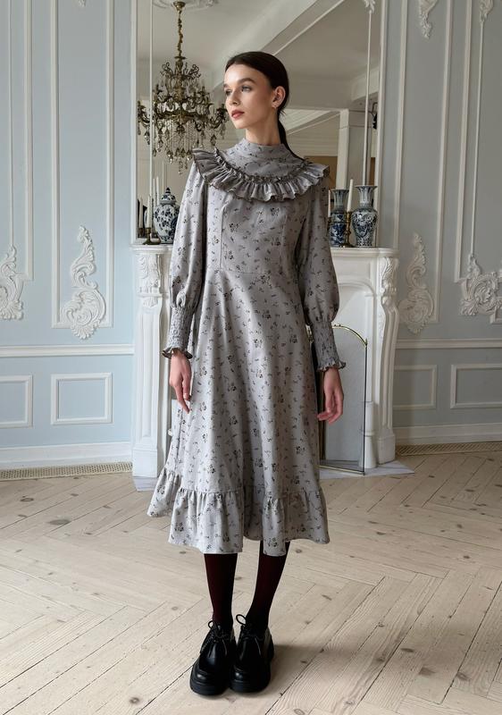Платье, которое будто создано для тех, кто ценит спокойную элегантность. Мягкая теплая фланелевая ткань, нежный цветочный принт и романтичный волан на воротнике добавляют образу шарма. Свободный крой, длина миди – комфортно и женственно одновременно. С помощью пояса, который идет в комплекте, можно подчеркнуть талию. Хорошо сочетается и с ботинками и с сапогами. 100% бавовна (тепла фланель)