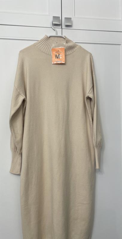 Дуже гарна сукня, міді. Мʼяка і приємна до тіла, в складі кашемір. Горловина- стійка Збоку є один розріз Виробник фабричний Китай, якість люкс 👌 (оранжева бірка ) Колір- гарний світлий беж 🤍 Довжина 105 см, пог 54 у вільному стані, дуже гарно тягнеться, рукав від шиї -69 см., на рукаві стильний високий манжет!