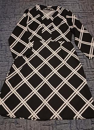 Сукня у велику клітинку рукав довгий v-подібний виріз на поясі перерізана збоку потайна блискавка низ трапеція розмір 16-18