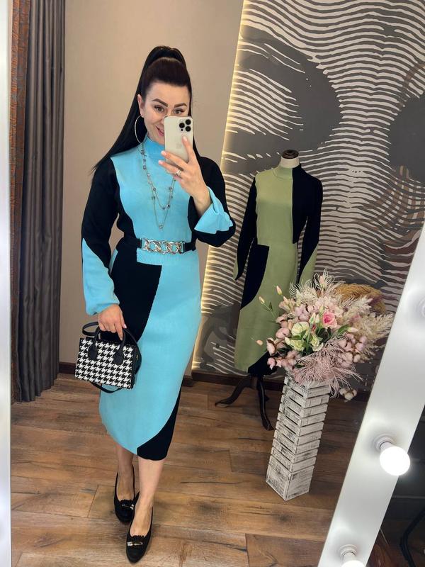 чрезвычайно красивое и эффектное платье облегающего кроя отлично подчеркнет красоту и грацию вашей фигуры, согреет в холодное время года и создаст хорошее настроение платье миди приталенного кроя с небольшим воротником стойка, пышными рукавами на манжетах в комплекте с волшебным поясом выполнено из приятного к телу трикотажа мелкой машинной вязки с великолепным принтом, который визуально делает силуэт стройнее размер единственный 44-46 Доступна в трех цветах длина 120 см, объем груди по изделию 102 см тянется до 114 см, длина рукава от шеи 68 см код 0653