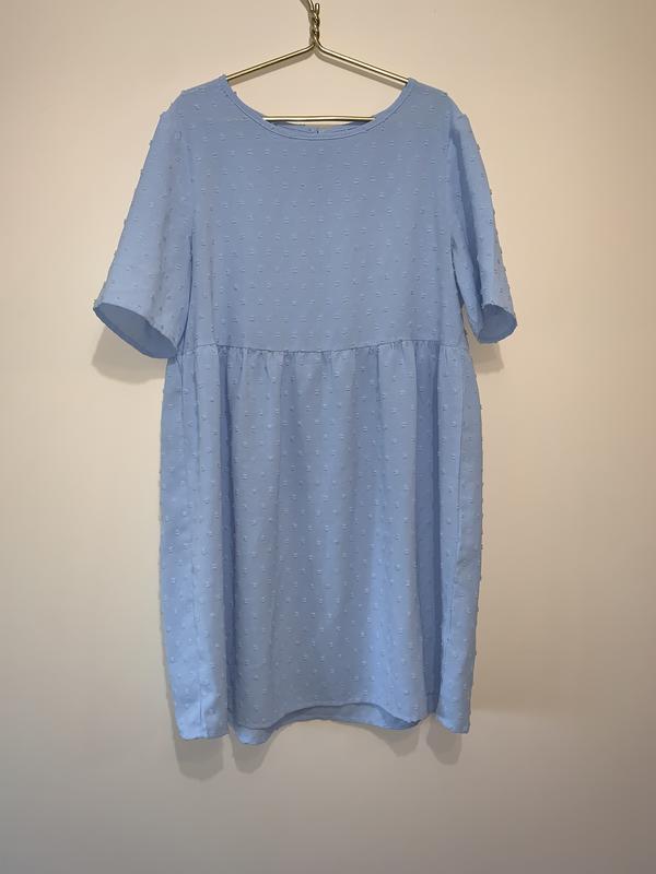 Легке плаття вільного крою блакитного кольору, прикрашене текстурою у вигляді маленьких об...